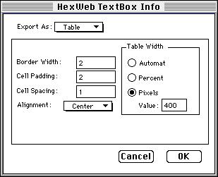 All necessary preferences for your table can be set here. When you are finished, close the dialog, and click the Netscape button for a preview.