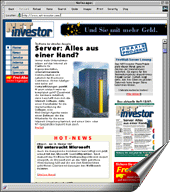 NET-Investor is the shooting star of the Internet magazines in Germany. The Publisher NET-Investor Verlag chose HexBase Publishing System because of the flexibility and speed of HPS. The new JAVA-based Text editor HexPad gives the writers a comfortable way to edit articles and check them into the system over the Internet. The use of Dynamic Fonts enables the user to view the articles in the same look and feel as in the printed magazine.