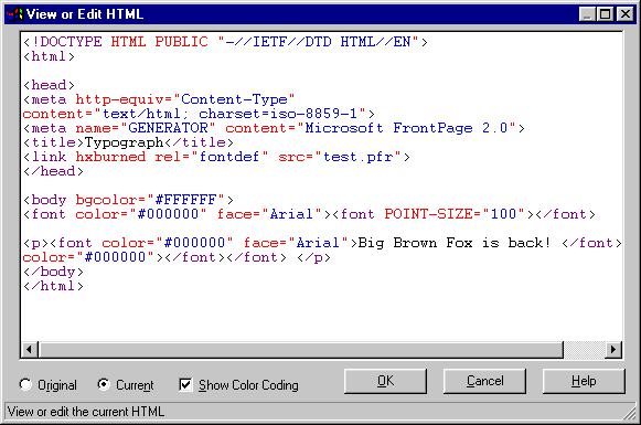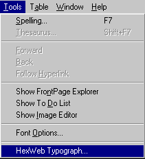 of HexWeb Typograph for Microsoft® FrontPage(TM) 97